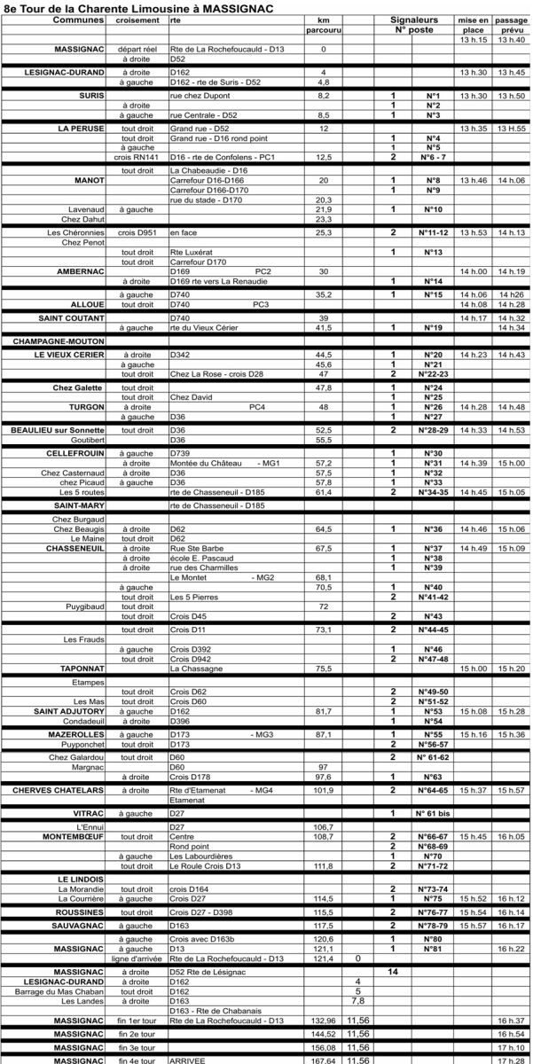 La 8e édition du Tour de la Charente Limousine (Élite Nationale) se dispute ce samedi 11 avril à Massignac (Charente). Au programme de la course organisée par l'Union Athlétique de La Rochefoucauld : 121,4 km en ligne et 4 tours de circuit de 11,560 km soit une distance totale de 167,640 kilomètres. Le départ sera donné à 13h40. Le vainqueur succèdera au palmarès à Louis Hardouin.