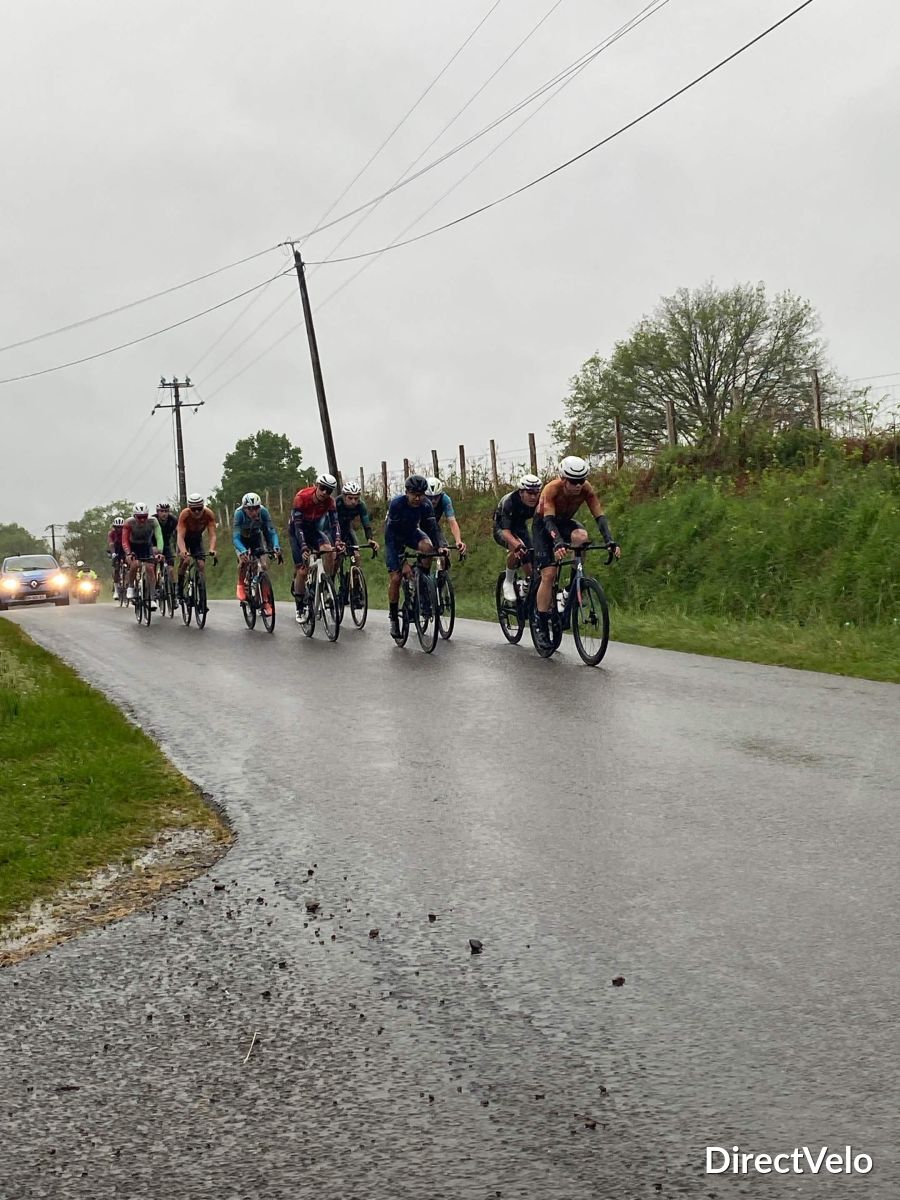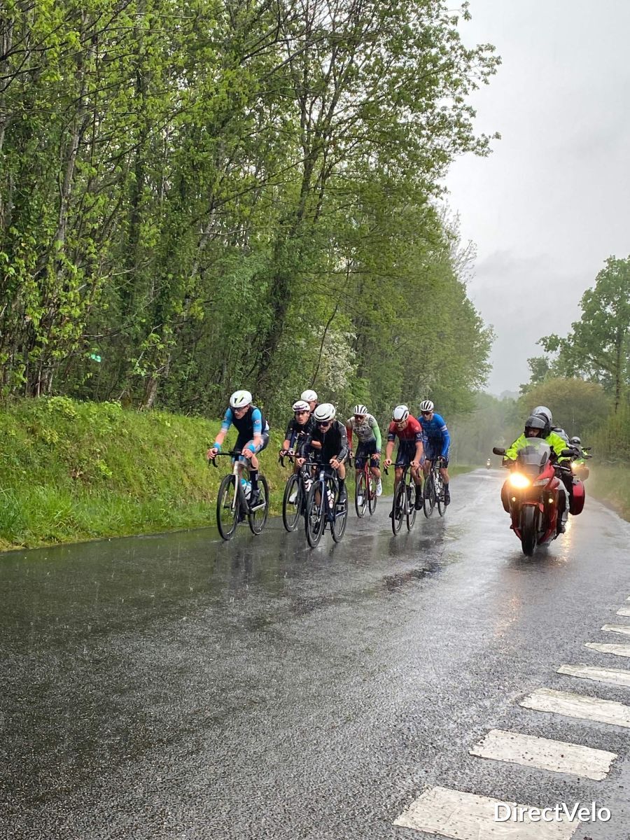 Jérémie MALINGE, Noé LEFEVRE (GSC Blagnac Vélo Sport 31), Eli CRON, Enzo GANE (E. Leclerc Ruffec Top 16), Erwan LECLABART (Team Deux-Sèvres), Gabin GAUTHIER, Achille WATERLOT (Montluçon Cyclisme) et Morgann FRANCON (Team Atria-Clermont-Ferrand) forment le groupe de tête.