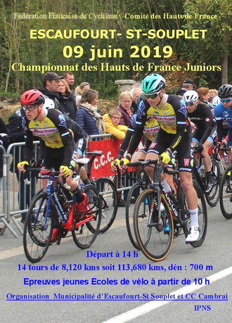 Le CC Cambrésien organise ce dimanche à Escaufourt-Saint-Souplet (Nord) le Championnat des Hauts-de-France Juniors. Au programme de la course : un circuit de 8,120 km à parcourir 14 fois soit 113,680 kilomètres. Le départ sera donné à 14h00.