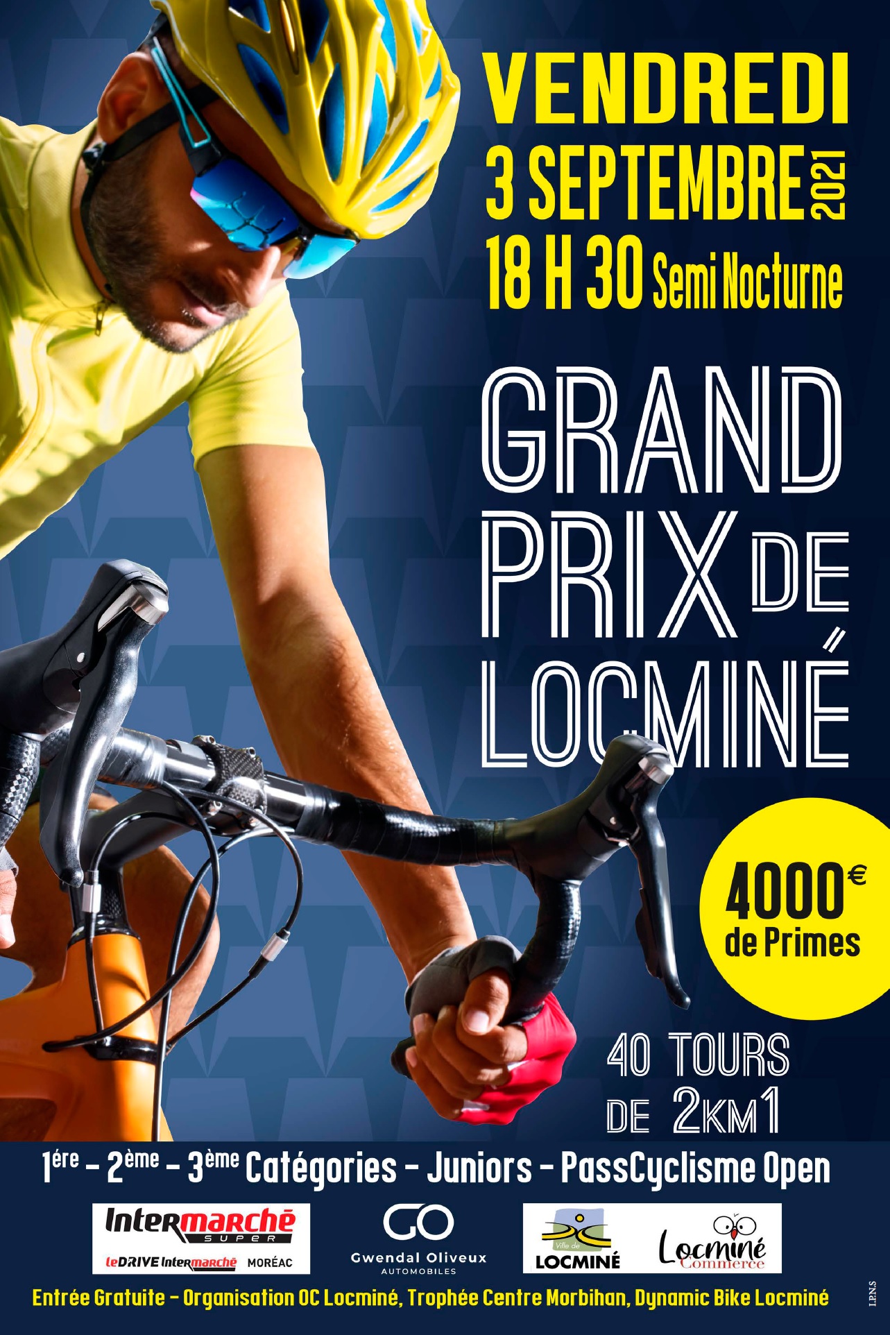 L'OC Locminé organise ce vendredi 3 septembre en semi-nocturne le Grand Prix Cycliste de Locminé (Morbihan). Au programme de l'épreuve Toutes Catégories : un circuit de 2,3 km à parcourir 40 fois soit 92 kilomètres (voir ici). Le départ sera donné à 18h30. La victoire était revenue l'an dernier à Théo Cotard (voir classement).