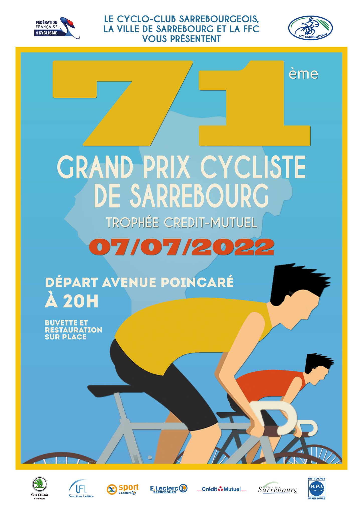 La 71e édition du Grand Prix de Sarrebourg-Trophée Crédit Mutuel (Moselle) se dispute ce jeudi 7 juillet en semi-nocturne. Au programme de l'épreuve Toutes Catégories : un circuit de 1,1 km à parcourir 60 fois soit 66 kilomètres. Le départ sera donné à 20h. La victoire était revenue l'an dernier à Martin Deschatres (voir classement).