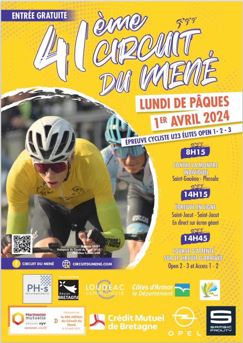 Le 41e édition du Circuit du Mené (Fédérale Espoirs) se disputera ce lundi 1er avril. Un contre-la-montre individuel suivi d'une étape en ligne figurent au programme de la course bretonne. Le vainqueur succédera à Baptiste Gillet (voir classements). Toutes les informations sur www.circuitdumene.com.