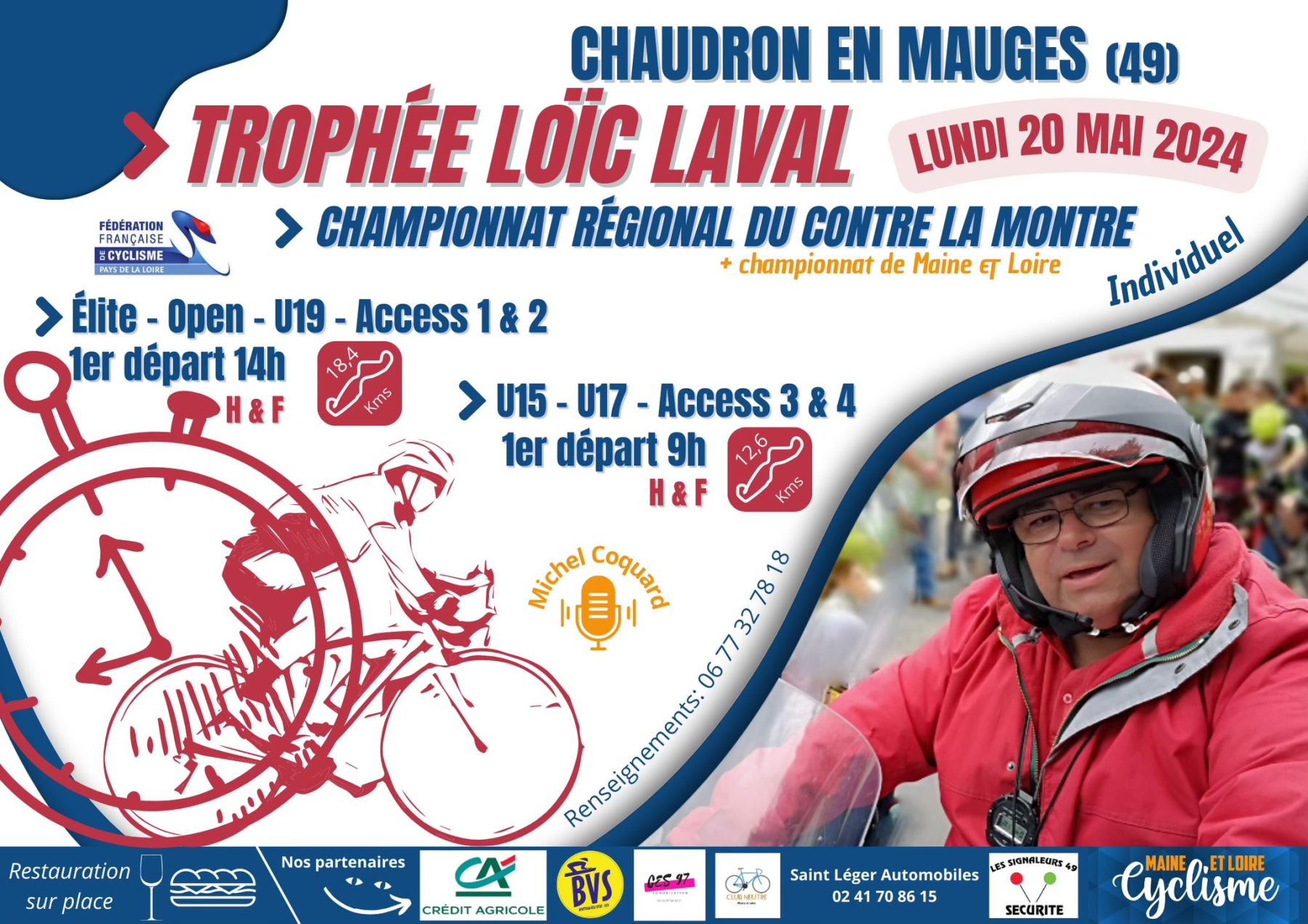 Le Trophée Loïc Laval, support aux Championnats des Pays de la Loire et de Maine-et-Loire CLM, se dispute le lundi 20 mai à Chaudron-en-Mauges. 18,4 kilomètres sont au programme de l'épreuve chronométrée. Le vainqueur succédera à Mathias Ribeiro Da Cruz (voir classement).
