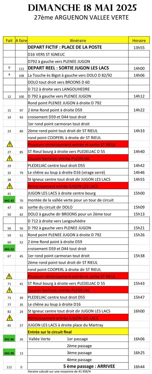 La 27e édition d'Arguenon-Vallée Verte (Fédérale Juniors) se dispute le dimanche 18 mai à Jugon-les-Lacs dans le département des Côtes d'Armor. 112 kilomètres -86 km en ligne + 4 tours de circuit de 6,5 km- sont au programme. Le départ fictif sera donné à 13h55 et le réel à 14h. Le vainqueur succédera au palmarès à Luc Royer (voir classement). Toutes les informations en cliquant ici.