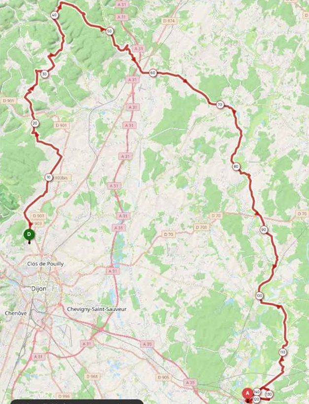 Parcours Tour de Côte d'Or - étape 1