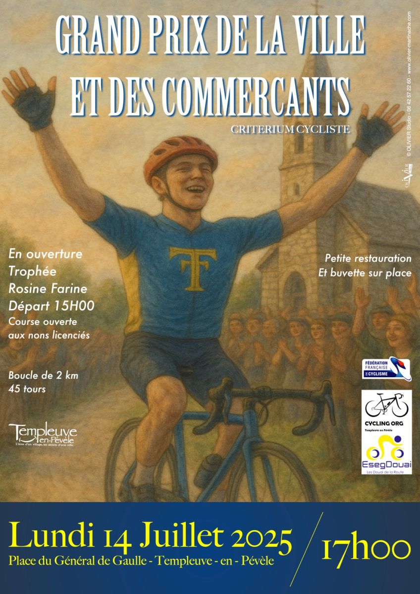 L'ESEG Douai organise en partenariat avec Cycling Org ce lundi 14 juillet le Grand Prix de la Ville et des Commerçants à Templeuve-en-Pévèle (Nord). Au programme de l'épreuve Élite, Open 1-2-3 et Access 1-2-3-4 : un circuit de 2 km à parcourir 42 fois soit une distance totale de 84 kilomètres. Le départ sera donné à 17h. Le vainqueur succédera à Mathis Pichon.