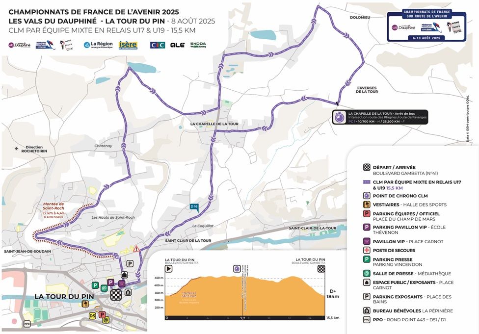 Le Championnat de France de l'Avenir se dispute du 6 au 10 août dans les Vals du Dauphiné, autour de la Tour-du-Pin (Isère). La Tour du Pin accueillera le départ et l’arrivée du relais mixte U17 et U19 qui aura lieu ce vendredi 8 août. Au programme : 2 tours de 15,5 km soit 31 kilomètres. La première équipe s'élancera à 15h. Le comité Auvergne-Rhône-Alpes s'était imposé l'an dernier.
