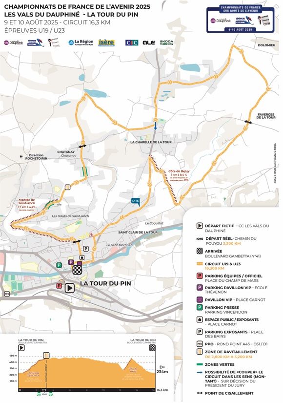 Le Championnat de France de l'Avenir se dispute du 6 au 10 août dans les Vals du Dauphiné, autour de la Tour-du-Pin (Isère). L'épreuve U19 Femmes en ligne se tiendra ce dimanche 10 août sur une distance de 78,8 kilomètres - 13,6 km + 4 tours de 16,3 km -. Le départ fictif sera donné à 9h et le réel à 9h06. La lauréate succèdera à Célia Gery (Auvergne-Rhône-Alpes).