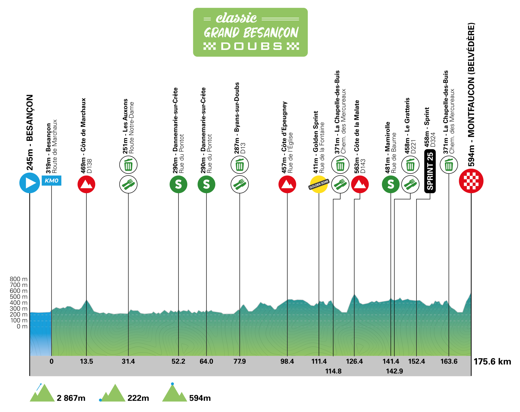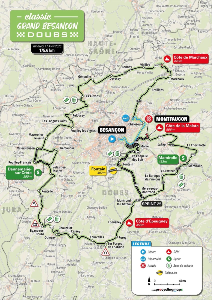 La 6e édition de la Classic Grand Besançon Doubs (1.1), cinquième manche de la FDJ United Series, se dispute ce vendredi 17 avril. 175,6 kilomètres seront au programme entre Besançon et Montfaucon (Doubs). Le départ fictif sera donné à 11h30 et le réel à 11h50. Le vainqueur succédera au palmarès à Guillaume Martin-Guyonnet.