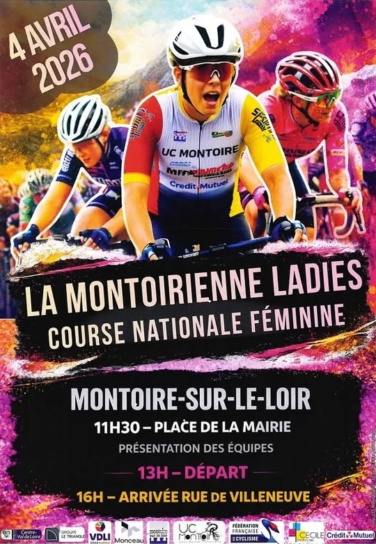L'Union Cycliste Montoirienne organise le samedi 4 avril à Montoire-sur-le-Loir (Loir-et-Cher) la deuxième édition de la Montoirienne Ladies (Nationale Femmes). Au programme : 57,7 km en ligne et 5 tours de circuit de 12,2 km soit 119 kilomètres. Le départ fictif sera donné à 13h et le réel à 13h08. La lauréate succèdera au palmarès à Constance Marchand. Toutes les informations en cliquant ici.
